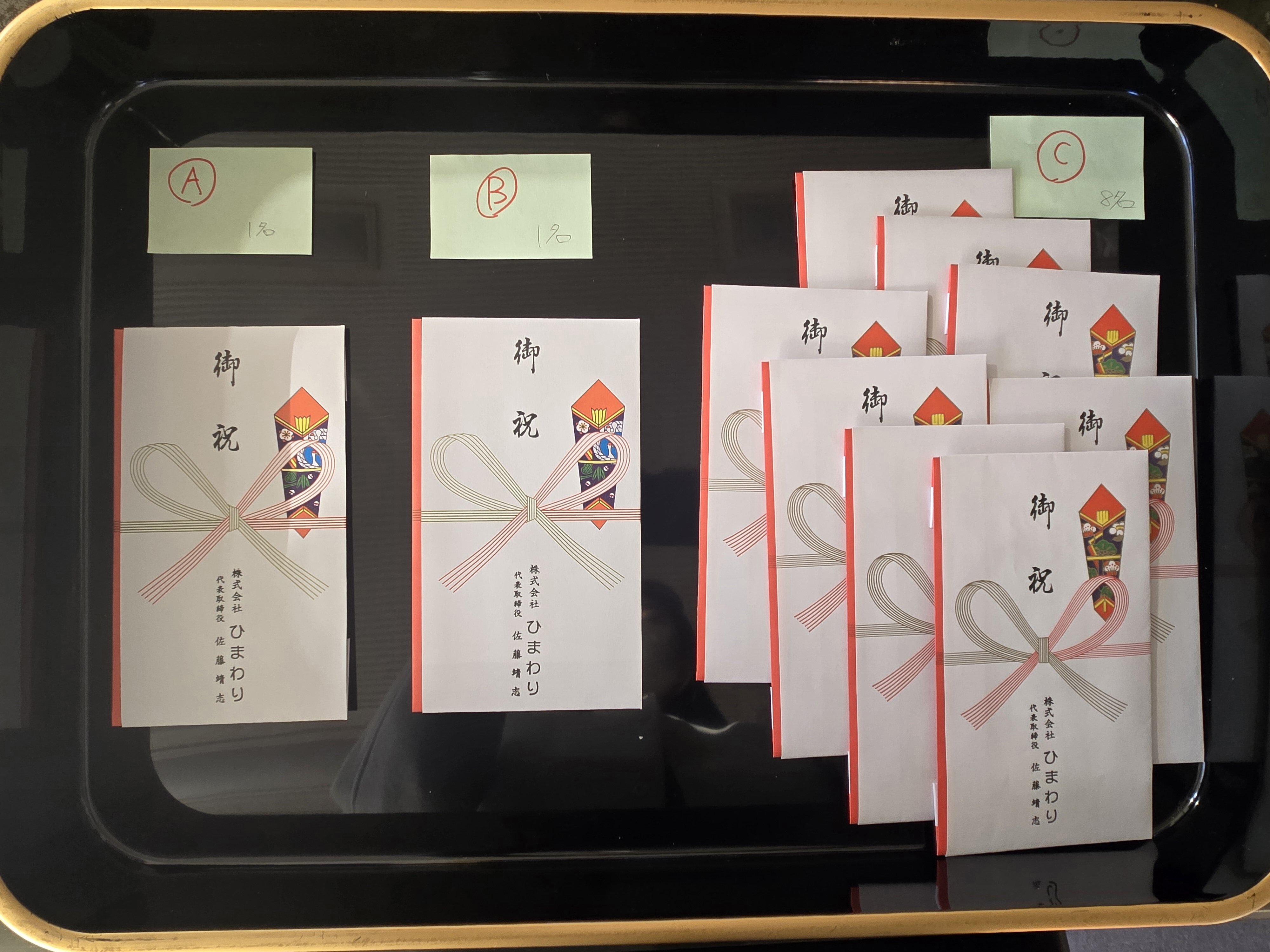 健康経営の取組の一環として、本年より健康診断結果優良者へ賞金を支給することといたしました。**** 2025年の結果 **** ・異常なし A判定:1名 ・軽度異常 B判定:1名 ・経過観察 C判定:8名 ・要再検査 D判定:8名 ・要精密検査 E判定:14名 ・要治療 F判定:3名 ・治療中 G判定:8名判定 A・B・C の社員に対し、結果に応じた金額を支給しました。健康への取組みに対するヤル気度アップ!の材料にして貰い、皆が少しずつでも、今より健康になれるよう励んでまいります。