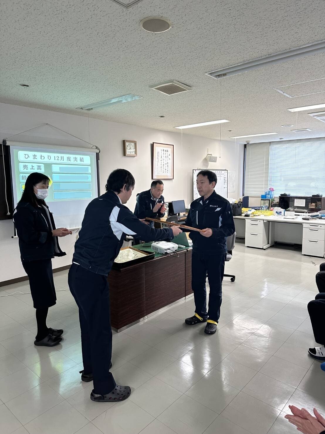 令和8年2月2日、2月度全体朝礼の席にて、永年勤続表彰を行いました。弊社では、長年に渡り勤務され、会社の発展のために貢献して頂いた社員の方へ表彰をおこなっております。・勤続30年:1名・勤続20年:該当者なし・勤続10年:1名今年度は合計2名の方へ、感謝の気持ちを込めて表彰状とお祝金を贈呈しました。日々支えてくださっている皆様に厚く御礼申し上げます。これからも、皆様の益々のご活躍を祈念しております!